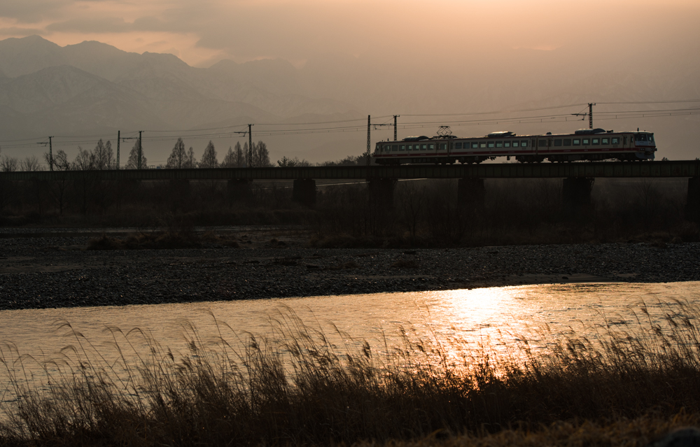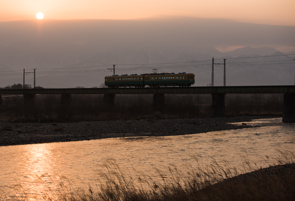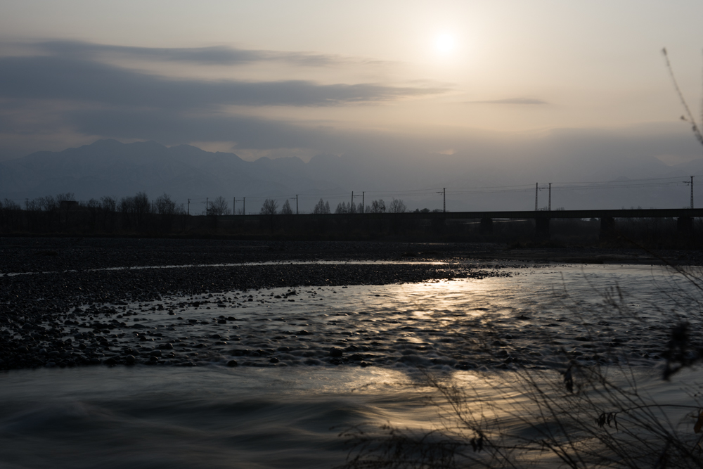 とりあえず、常願寺川堤防からということにして到着するも立山方向を見ると、剱岳の上空にが雲に覆われて朝日が見えそうもない状態。。昨日と同じ感じです。