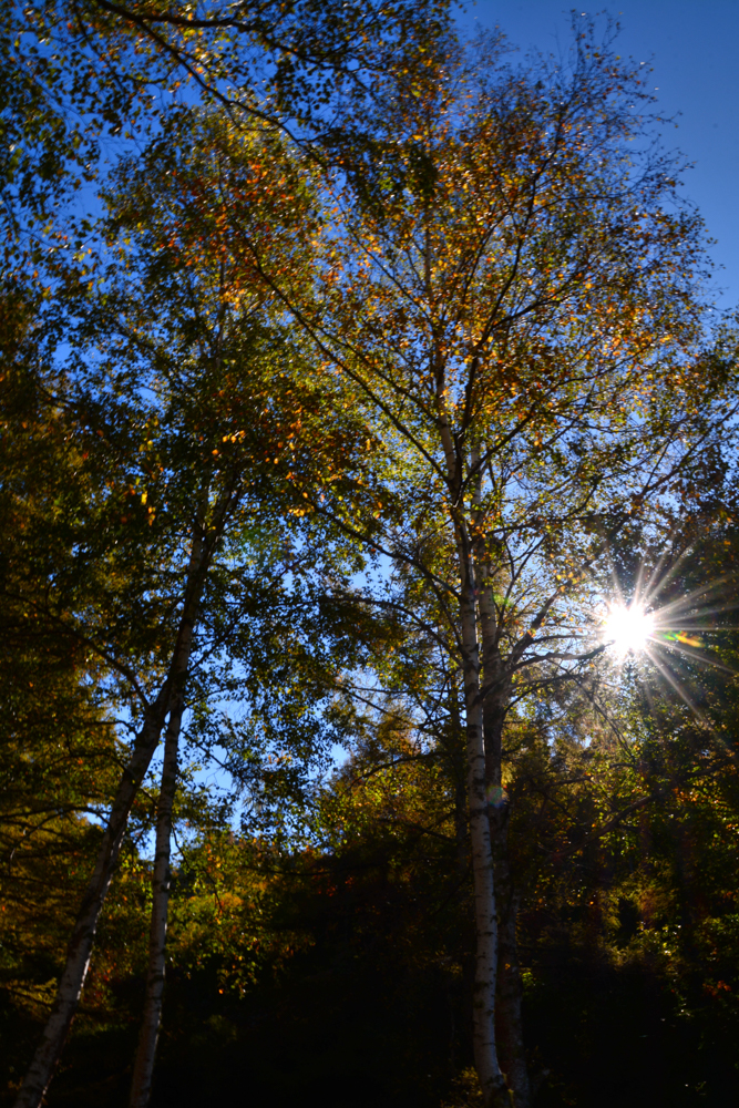 池を撮るのはやめて木でも写してみる。絞って太陽を入れてみた。