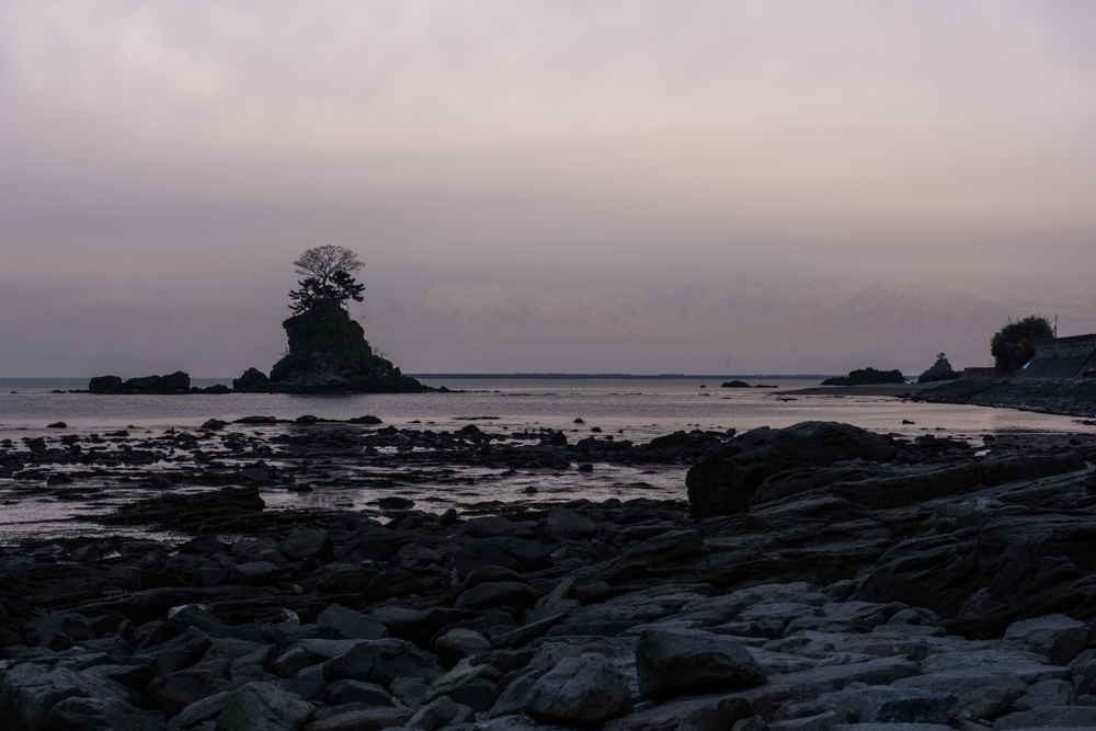 うっすらと立山連峰が見えますが、北陸の冬の空らしいどんよりした空。